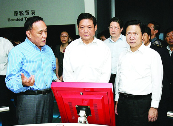 昨天,劉淇一行參觀(guān)園區綜合保稅區。記者 徐志強 攝