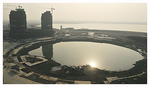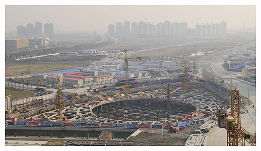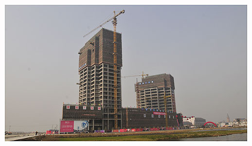 月亮灣區域毗鄰獨墅湖,作為科教創(chuàng )新區配套商務(wù)區,由美國優(yōu)聯(lián)加建筑設計事務(wù)所按中央商務(wù)區標準高起點(diǎn)高水平規劃,整體布局依據“一個(gè)核心、一個(gè)東西軸線(xiàn),一條自然界線(xiàn),三個(gè)縱向層次”的設計理念展開(kāi),在總共0.73平方公里區域內規劃建筑面積111萬(wàn)平方米。月亮灣核心區整體開(kāi)發(fā)建設分三期實(shí)施,一期項目有建屋大廈、月亮灣國際中心、教育發(fā)展大廈、月亮灣置地酒店商業(yè)街等四個(gè),總建筑面積超過(guò)37萬(wàn)平方米,總投資約30億元人民幣,功能涵蓋商業(yè)設施、星級賓館、酒店式公寓、高級寫(xiě)字樓等領(lǐng)域,這批重點(diǎn)商業(yè)項目的開(kāi)發(fā)建設,對于進(jìn)一步改善科教創(chuàng )新區商務(wù)環(huán)境、完善城市功能、提升城市品位、發(fā)展現代服務(wù)業(yè)具有重要意義。月亮灣項目相關(guān)工程負責人柏先生介紹說(shuō),目前月亮灣工程主體進(jìn)度已經(jīng)過(guò)半,一期大樓已經(jīng)全部封頂,接下來(lái)進(jìn)入外部幕墻工程,至2010年年底左右,月亮灣項目將全部建成并投入使用。(攝影 王宇婷)