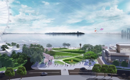 藝術(shù)廣場(chǎng)項目由2層地下室及多個(gè)地下連接通道組成,在金雞湖右岸街區域提升改造中具有重要地位。作為金雞湖右岸中區的聯(lián)系紐帶,項目建成后,將通過(guò)地景草坡呈現開(kāi)闊的藝術(shù)展示空間,打造悅動(dòng)的藝術(shù)水岸;并與文華東方酒店、蘇州當代美術(shù)館及周邊商業(yè)空間通過(guò)地下室連接通道有效銜接,利用場(chǎng)地高差豐富游客體驗,打造聚集人氣、凝聚活力的城市客廳,形成藝術(shù)文化休閑融合的湖濱體驗新空間。