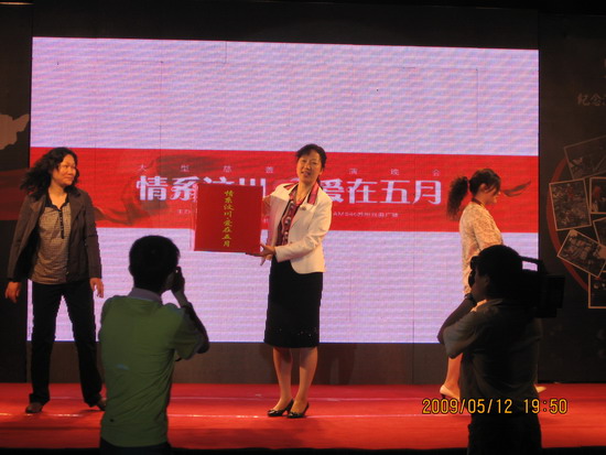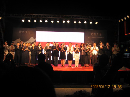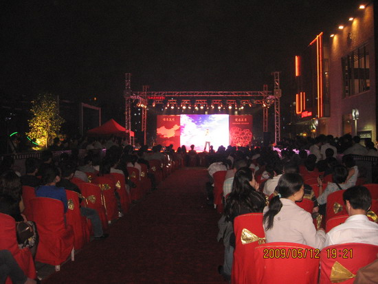 5月12日晚上,雨絲蒙蒙,為緬懷在汶川地震中逝去的人們,重溫在抗震救災過(guò)程中涌現出來(lái)的可歌可泣的感人事跡,同時(shí)也是為汶川災區的重建募集資金,為災區人民送上蘇州人民的一份愛(ài)心,由蘇州1912投資有限公司、蘇州音樂(lè )臺聯(lián)合主辦的“情系汶川·愛(ài)在五月”—— 紀念汶川地震一周年大型慈善晚會(huì )在李公堤風(fēng)箏小廣場(chǎng)舉行。